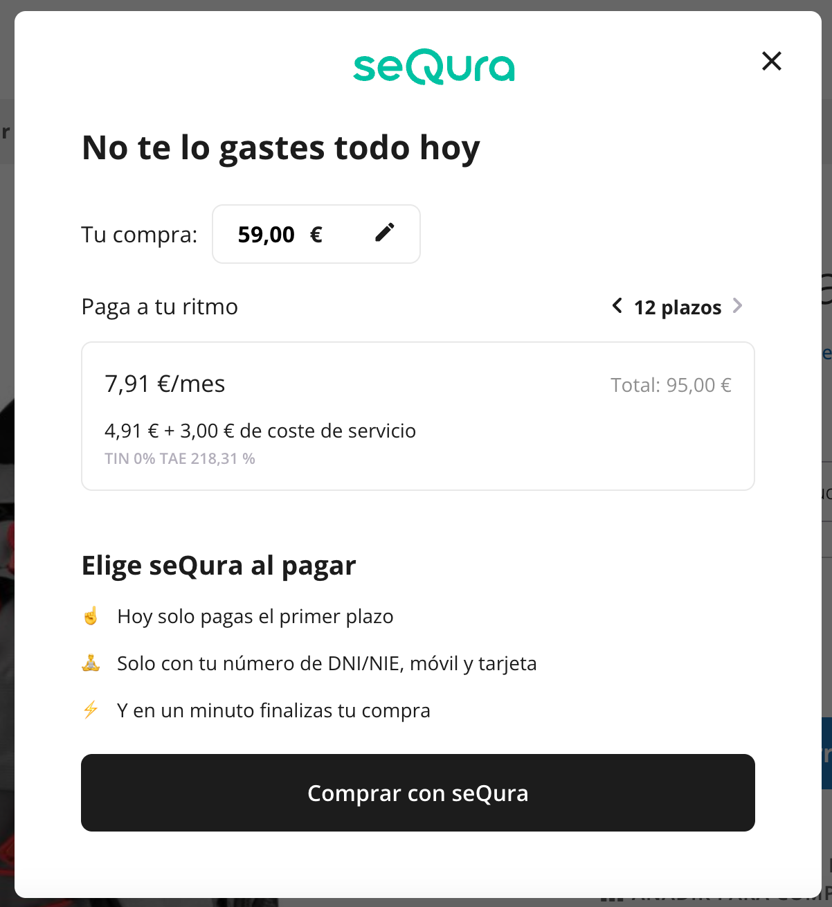 Once the payment method is picked the Sequra form is displayed. After following the instructions described in the form, the payment process should be completed.
