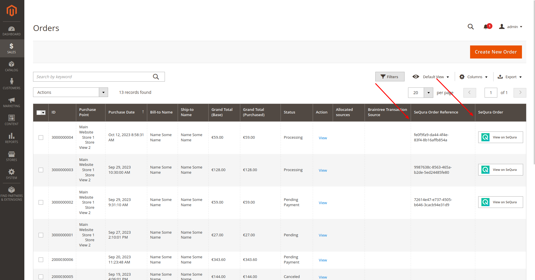 Since the payment may need a review from SeQura, merchants are able to check and monitor the payment status in the Magento 2** admin panel** in the Orders page.