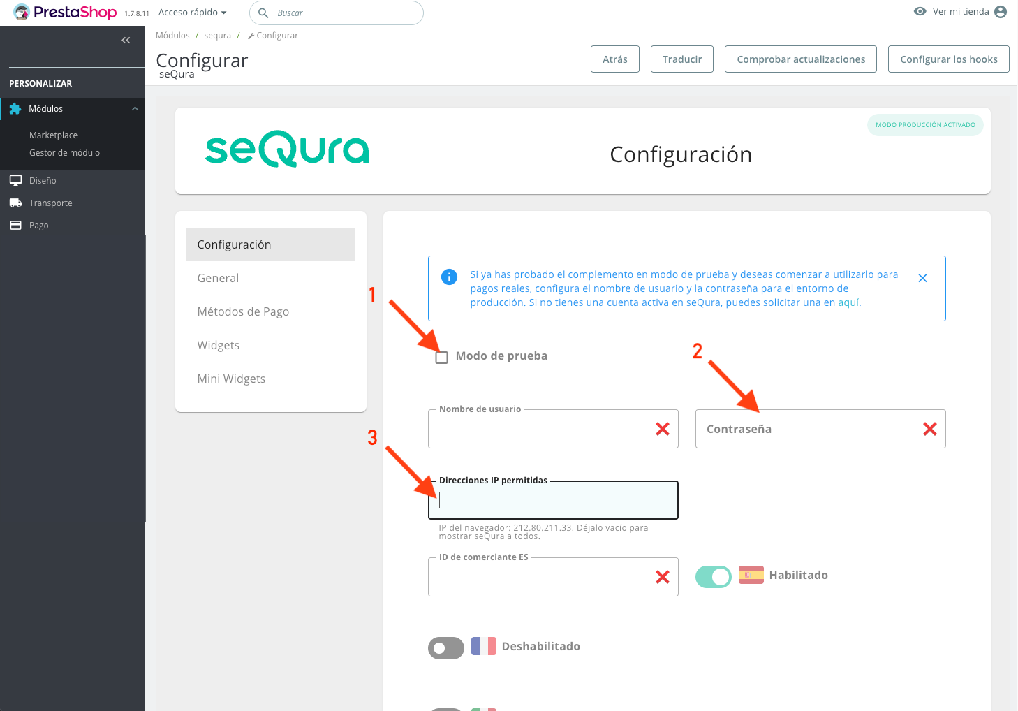Once arrived to this point, after installing and testing the payment methods and the visual elements, it is necessary to contact the seQura integrations department in order to verify everything is working correctly.