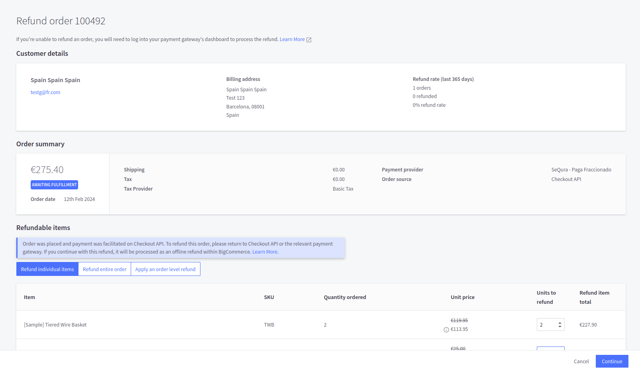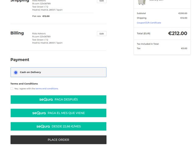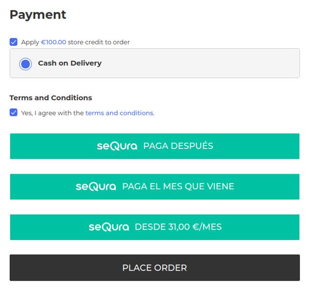 In case a registered customer has some store credit that he/she wants to use for paying for a part of the total order amount, SeQura payment methods also support that feature.