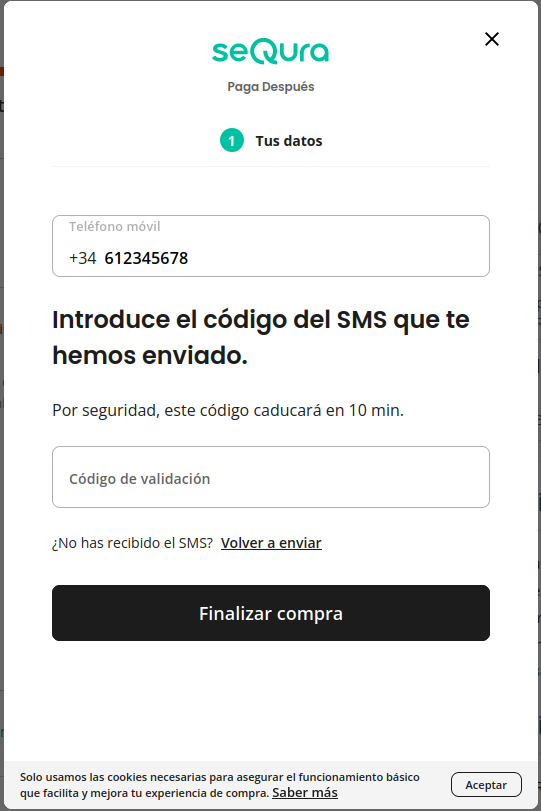 Once the customer has selected a SeQura payment method by clicking on the corresponding payment button, he/she will be presented with the SeQura identification form. After following the instructions described in the form, the payment process should be completed.