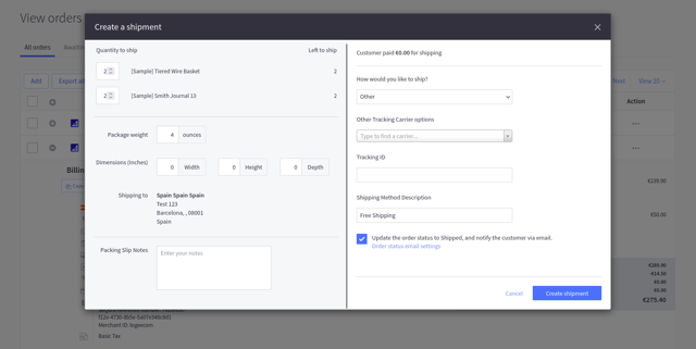 You are able to either partially or fully ship an order placed with the SeQura payment method using the native BigCommerce mechanism for shipping an order, by going to Actions > Ship items from the order overview page.