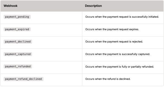 When you process payments with seQura, we'll send the following webhooks throughout the payment lifecycle: